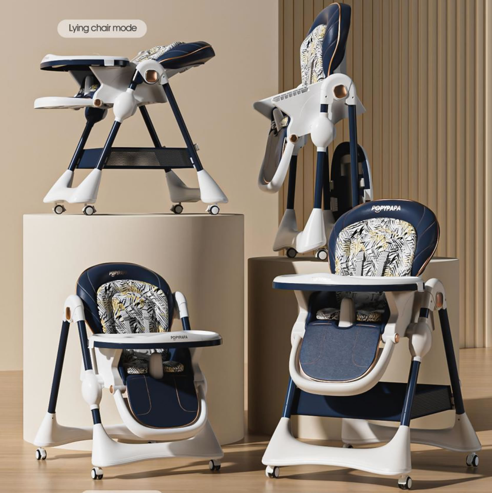 La chaise haute PopyPapa est l’équipement indispensable pour les repas de votre enfant. Alliant esthétique moderne et praticité, elle offre un soutien optimal grâce à sa conception ergonomique et ses finitions soignées en bleu marine et blanc.