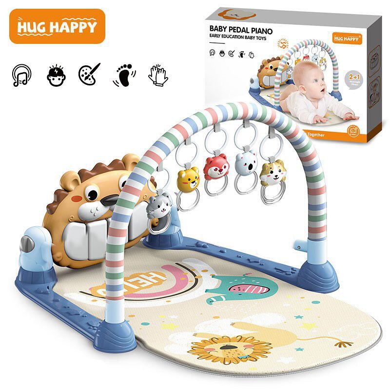 Design 3-en-1 : tapis d’éveil + piano musical + jouets suspendus et latéraux.