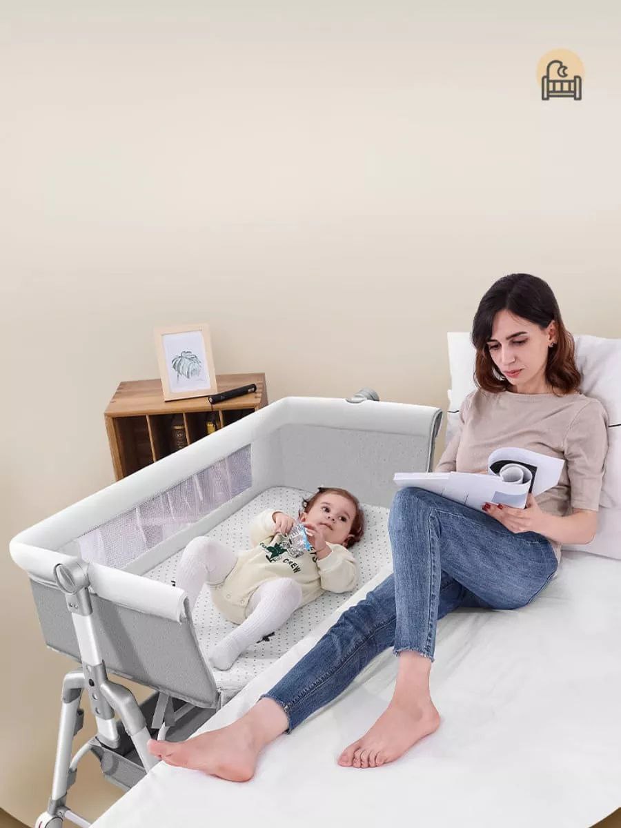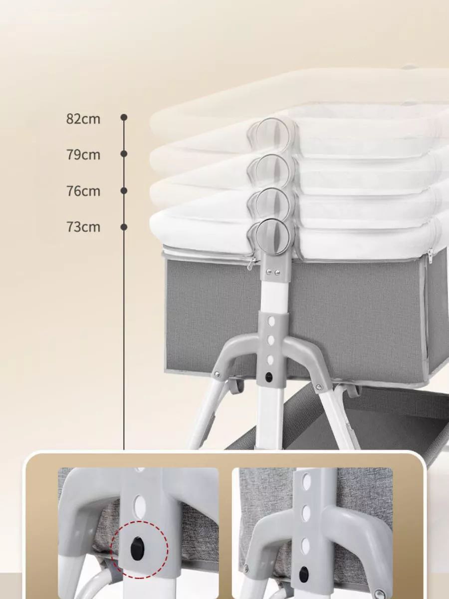 Hauteur réglable sur plusieurs niveaux – Parfait pour s’aligner au lit des parents.