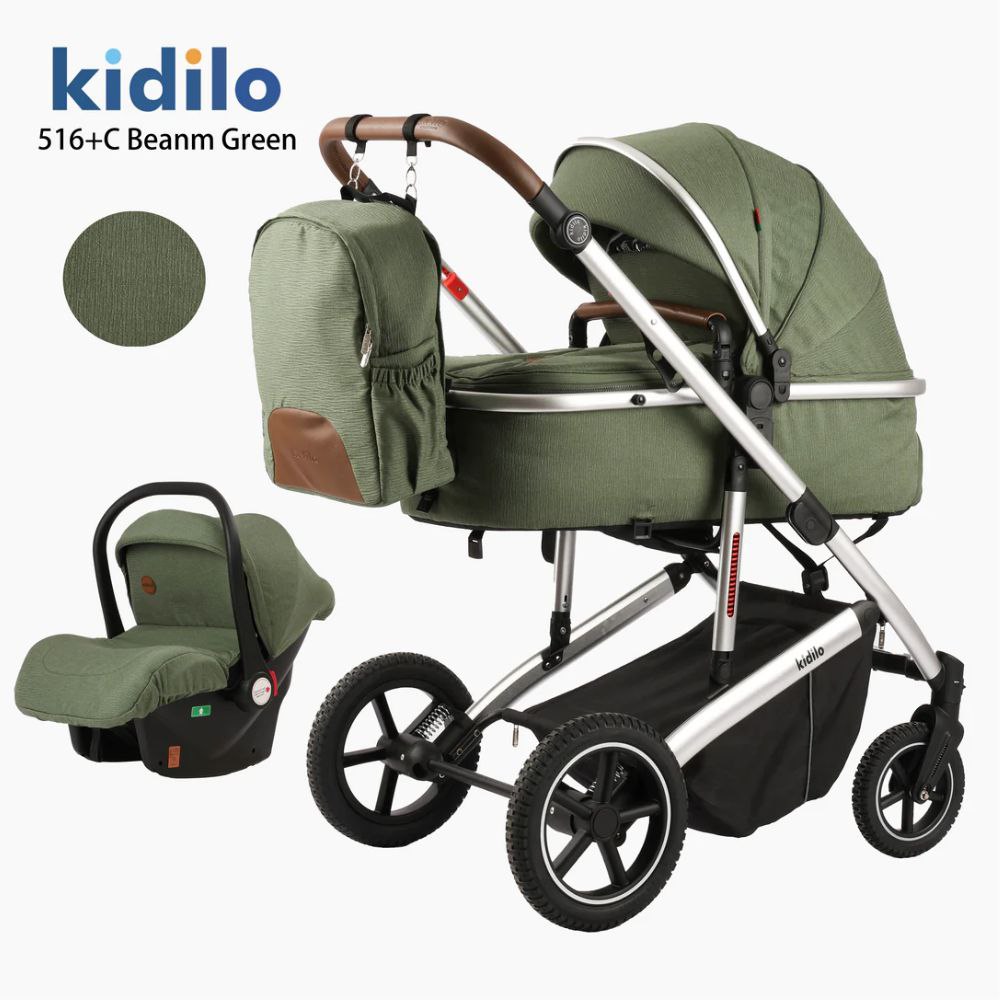 Poussette Kidilo 516+C – Élégance, confort et sécurité réunis pour accompagner votre bébé dès la naissance. Disponible en deux coloris raffinés : Beanm Green et Beige, elle allie design moderne et praticité au quotidien.